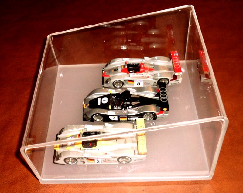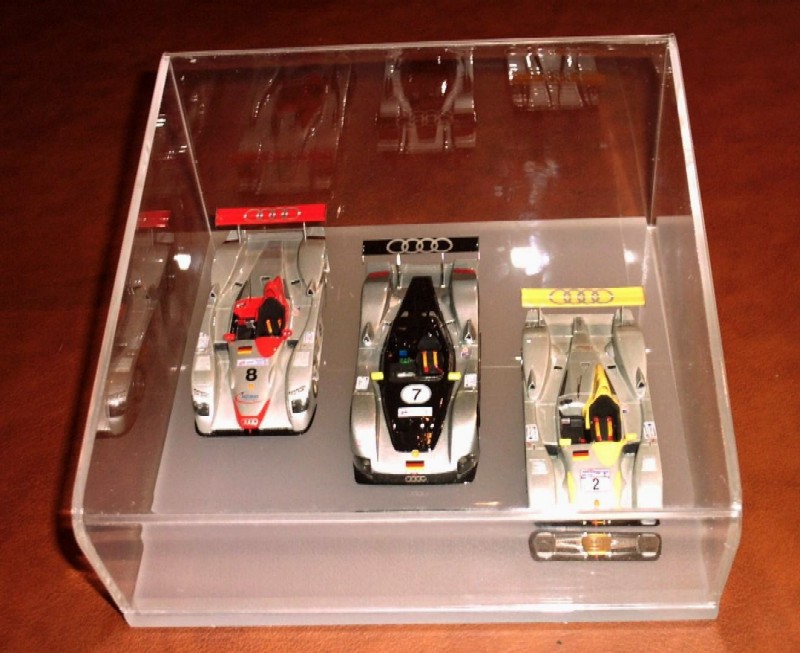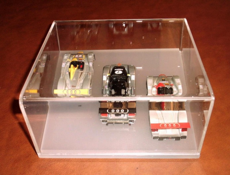 Questa vetrinetta oltre ad avere un disegno fuori dal comune è molto accattivante , essa puo' ospitare fino a tre modelli in scala 1/43 molto comodamente dando visibilità agli stessi da tutti i lati ma con effetti diversi in base a varie angolazioni di luce che producono giochi di luce sempre diversi dati dalle diverse spiovenze del plexi che riflette sul fondo molto chiaro e sul modello stesso.